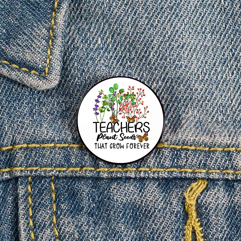 Flower Teacher Printed Pin Custom Brooches Shirt Lapel teacher tote Bag backpacks Badge gift brooches pins for Teacher's Day