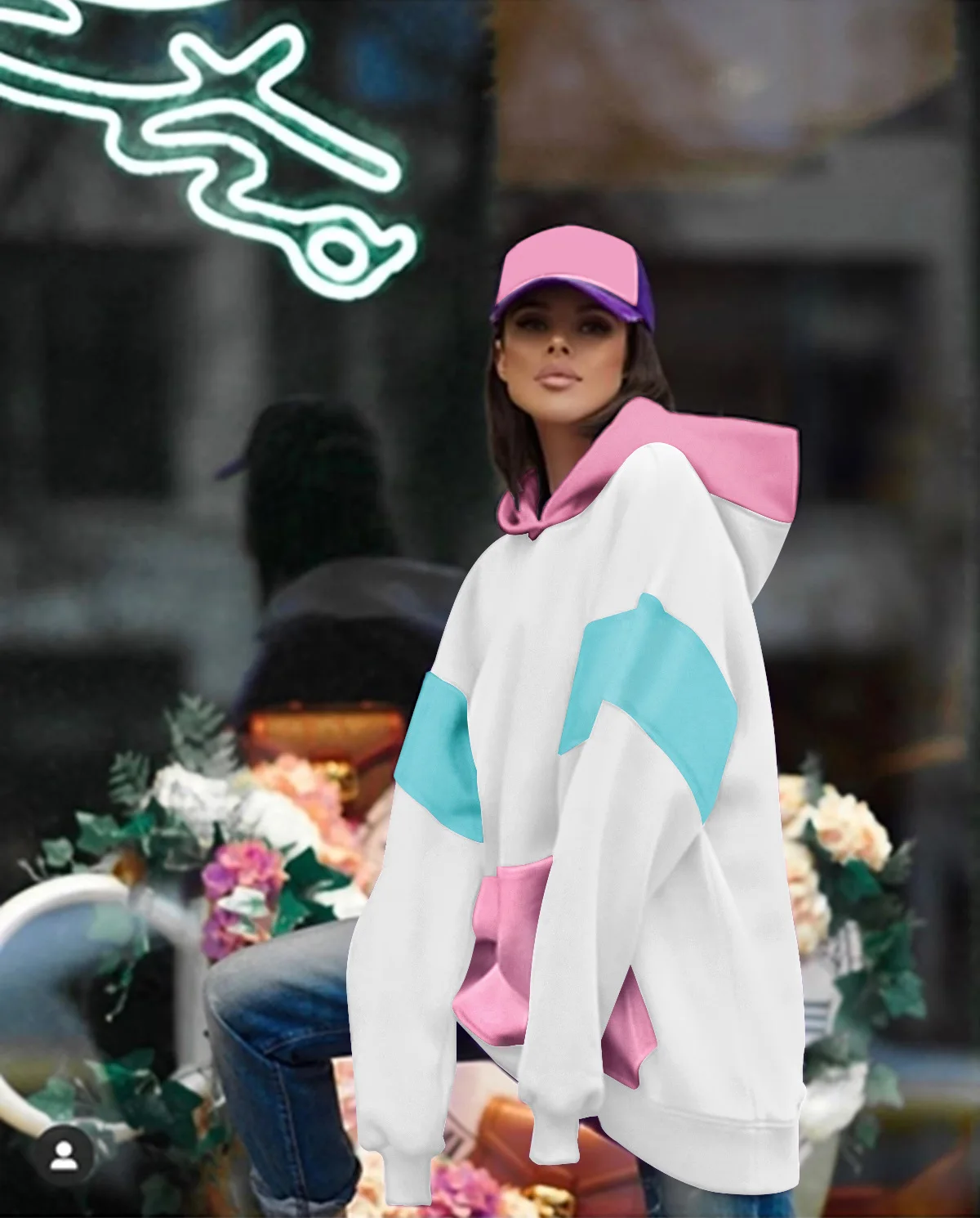 2022 осенние женские свитшоты, Цветные Лоскутные с капюшоном и длинным рукавом, свободная повседневная Уличная одежда, теплые флисовые зимние женские толстовки C4135