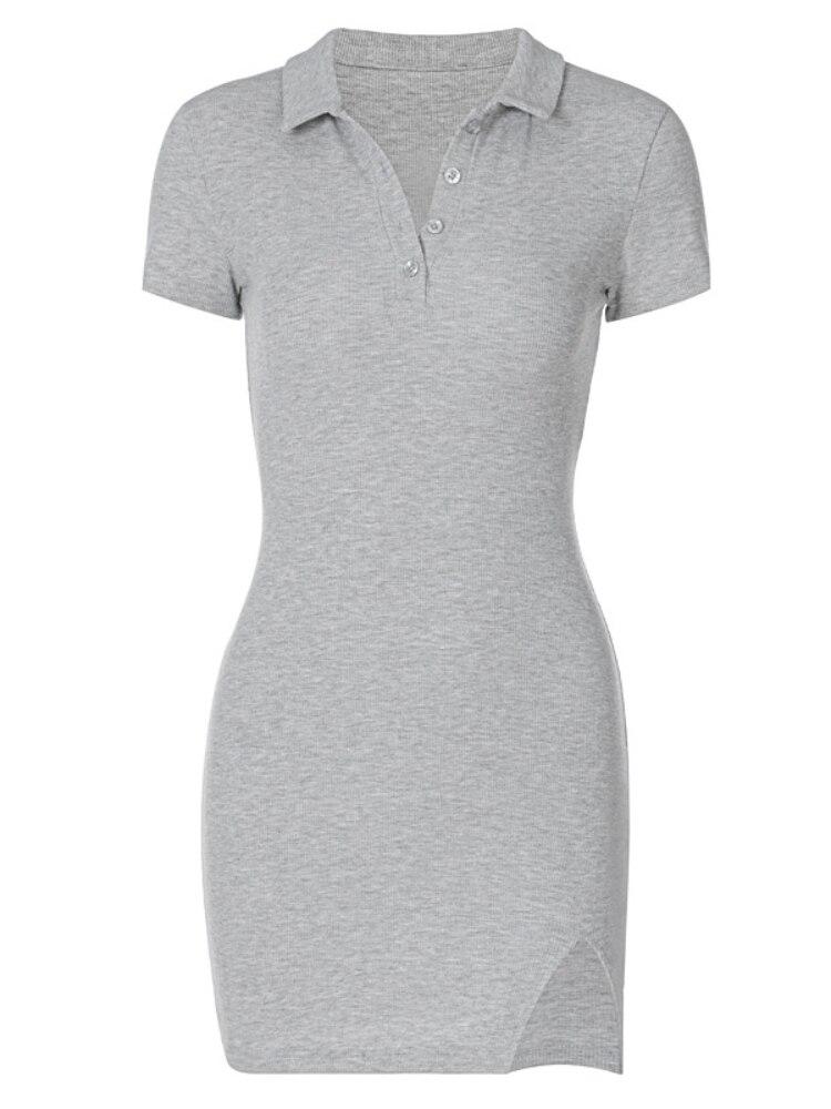 2022 сексуальное мини-платье с короткими рукавами и разрезом, летняя женская модная уличная одежда, милая однотонная обтягивающая одежда для вечеринок и клубов Y2K L серый