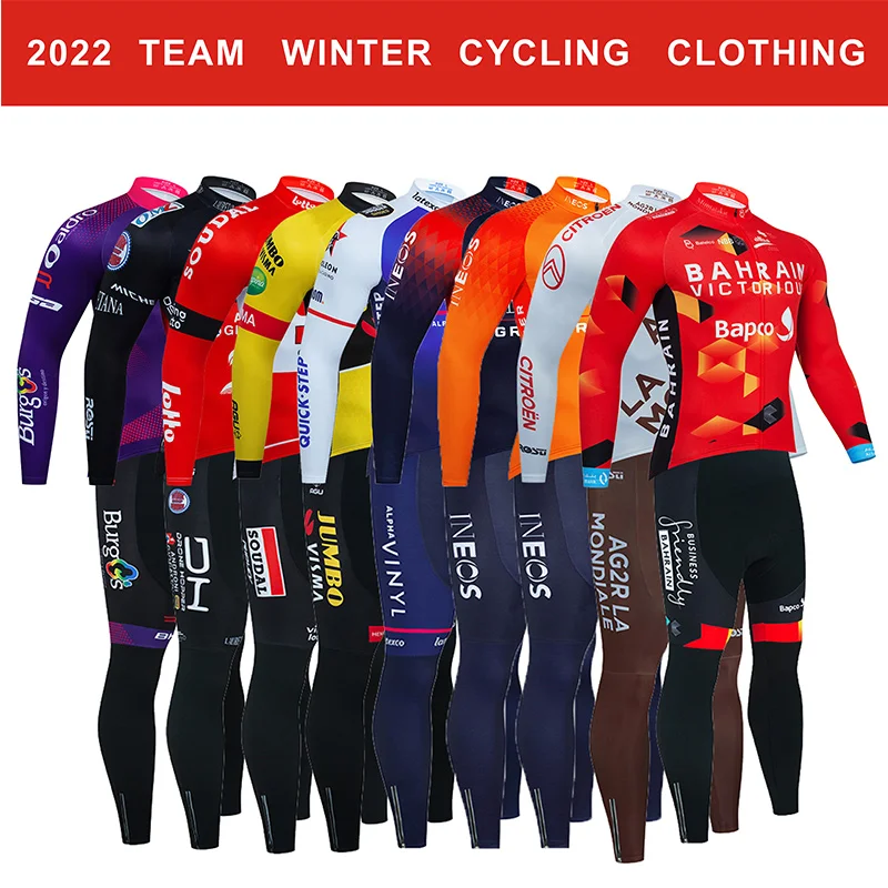 2022 французская зимняя велосипедная команда Джерси брюки комплект MTB велосипедная одежда Ropa Ciclismo Зимняя Теплая Флисовая мужская длинная вел...