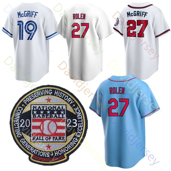 2023 baseball jersey 19 27 fred mcgriff scott rolen hall of fame patch size s-3xl, Blue;black