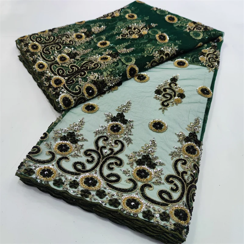 2022 Swiss New Green Popular Style Fabric Africa высококачественный Тюль с бисером Lace ручной работы Luxury Sequin для свадьбы