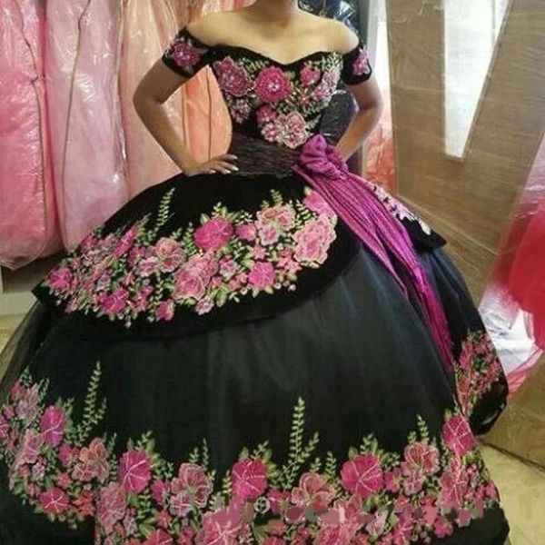 2022 black quinceanera dresses applique puffy skirt sweet 16 dress long vestidos de 15 ball gown prom gowns, Blue;red