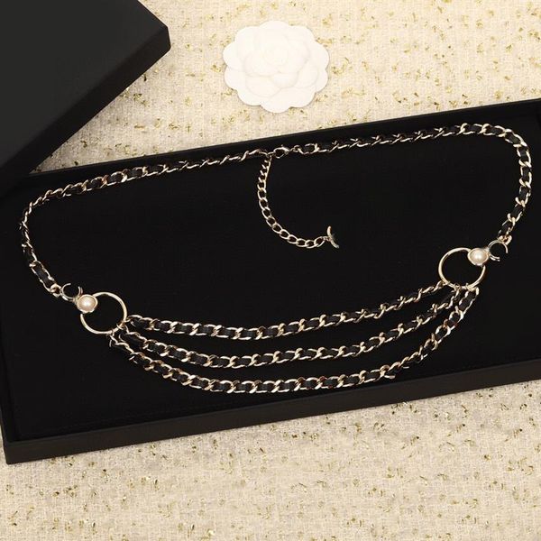 2022 charm belt with genuine leather and chain desing for women wedding jewelry gift have box stamp ps7510319i, Golden