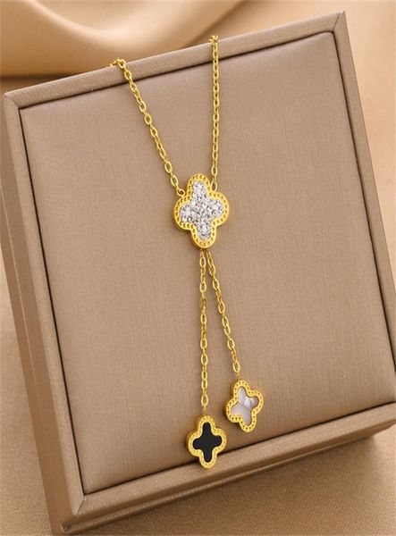 2022 european and american fashion fourleaf clover necklace women039s gold titanium steel multizircon shell piece tassel pend7130815, Silver