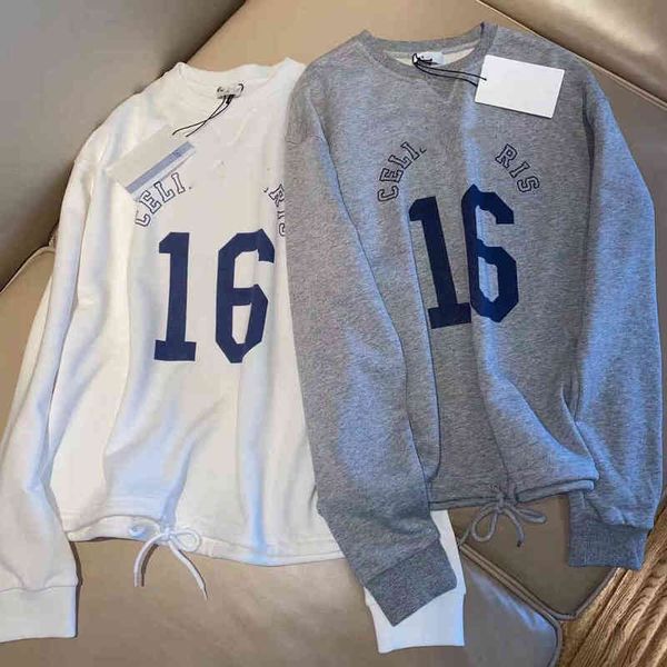 2022 factory wholesale new ce ss early autumn female lin family no. 16 letter printing drawstring loose round neck sweater, Black