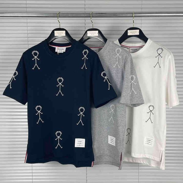 2022 fashion brand tb t-shirts men casual slim cotton t shirt summer short sleeve o-neck stickman pattern mens clothing, White;black