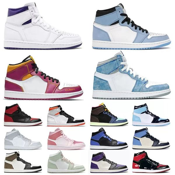 2022 jumpman 1 unc 1s basketball shoes university blue court purple light smoky grey pine green shadow reverse bred sports men women sneaker
