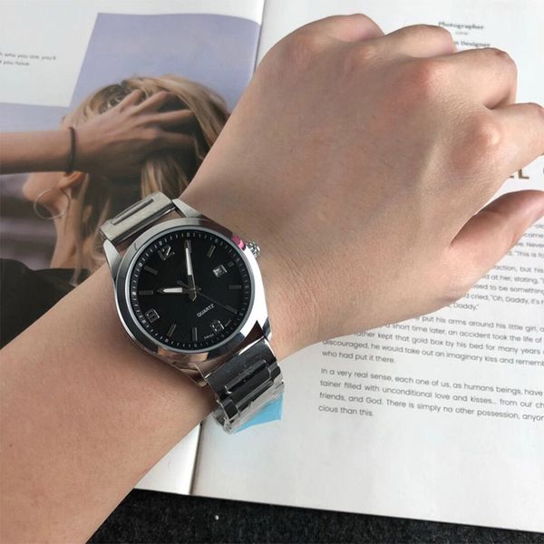 2022 men's luxury quartz watch fashion delicate multi-function waterproof calendar steel band watches, Slivery;brown
