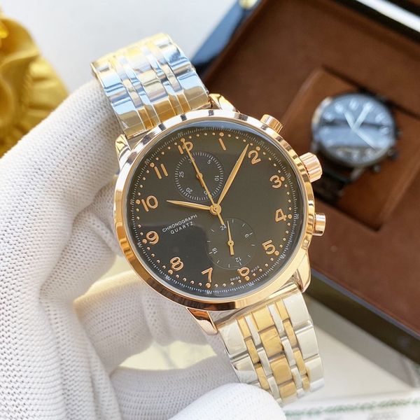 2022 new five stitches luxury mens watches all dial work quartz watch brand chronograph clock steel belt art fashion accessories round shell, Slivery;brown