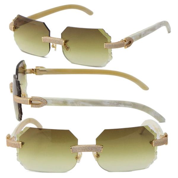 2022 new micro-paved rimless luxury diamond set sunglasses white genuine natural buffalo horn sun glasses rocks frame male and fem222o, White;black