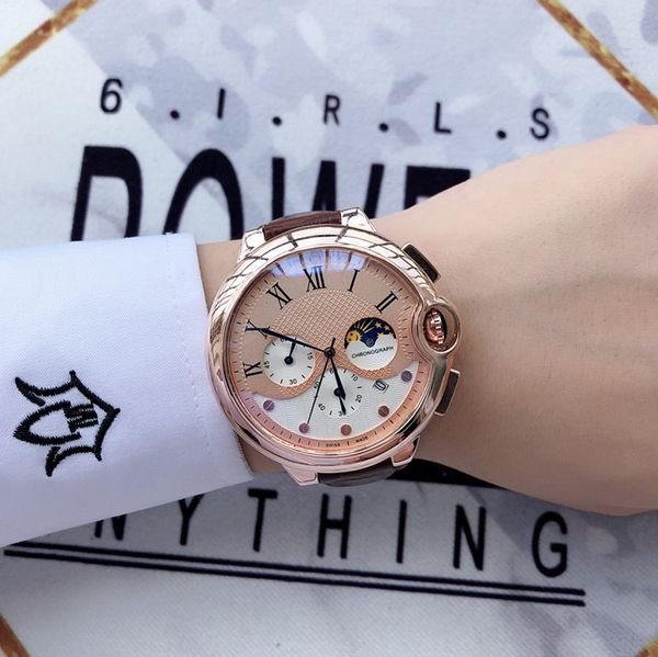 2022 new six stitches luxury mens watches all dials work 42 mm in diameter quartz watch brand logo chronograph clock fashion moon phase leat, Slivery;brown