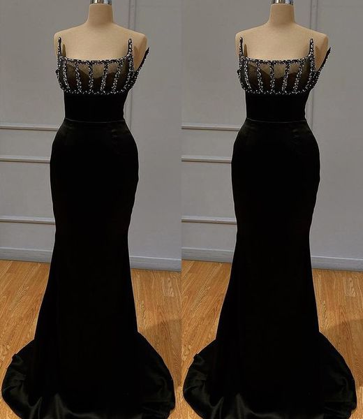 2022 plus size arabic aso ebi black mermaid prom dresses beaded satin evening formal party second reception bridesmaid gowns dress zj403