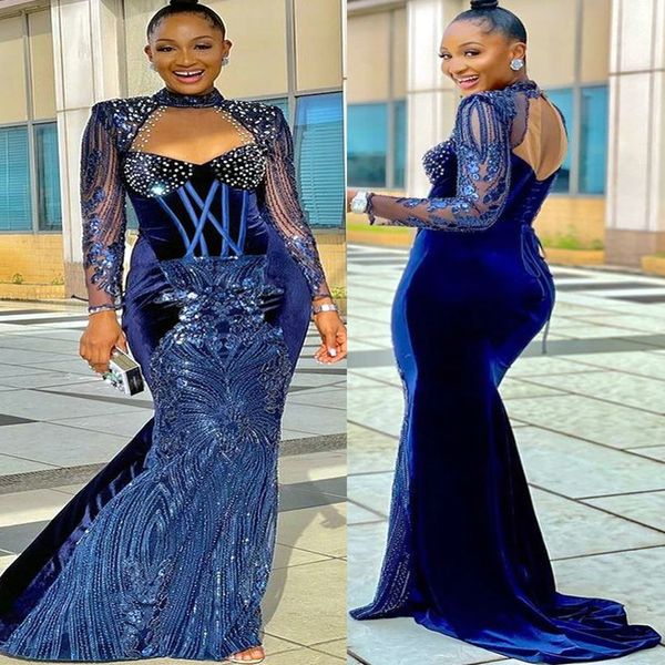 2022 plus size arabic aso ebi royal blue mermaid prom dresses beaded crystals evening formal party second reception birthday engagement gown, Black