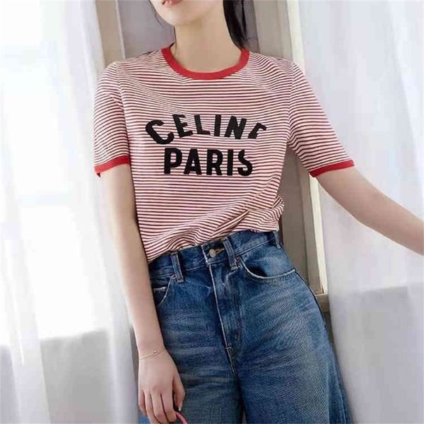 2022 spring and summer ce family's new versatile striped women's t-shirt design feels light, luxurious sweet, the inner is, White