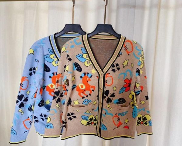 2022 women039s s weater western style knitted cardigan women039s spring and autumn sweater jacket with cartoon printing 7176792821, White;black