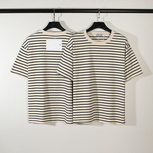 2022ss spring new round neck loose edition horizontal stripe print t-shirt men and women casual short sleeve, White;black