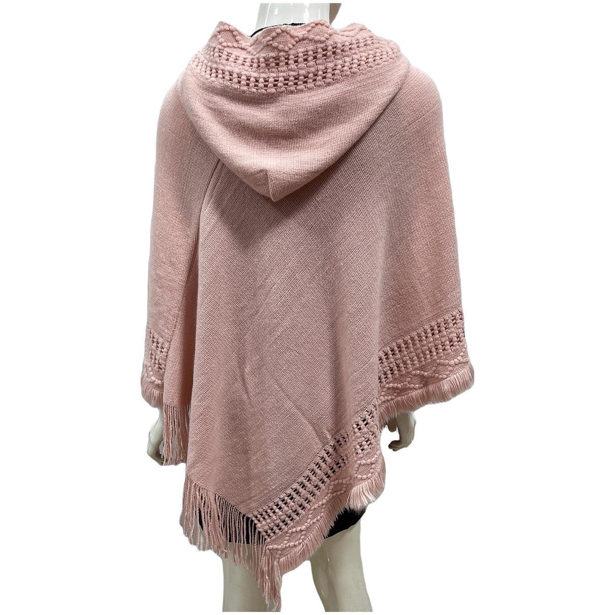 2023 Женская накидка-шаль с капюшоном и кисточками — размер плюс, однотонная, свободный крой 60-80cm розовый