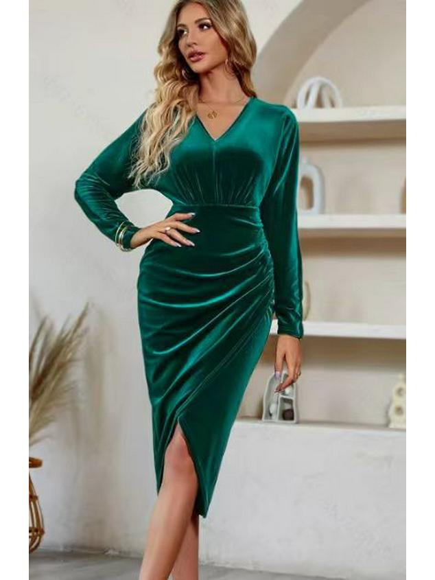 2023 Женское зимнее повседневное платье с V-образным вырезом, однотонное, приталенное Small