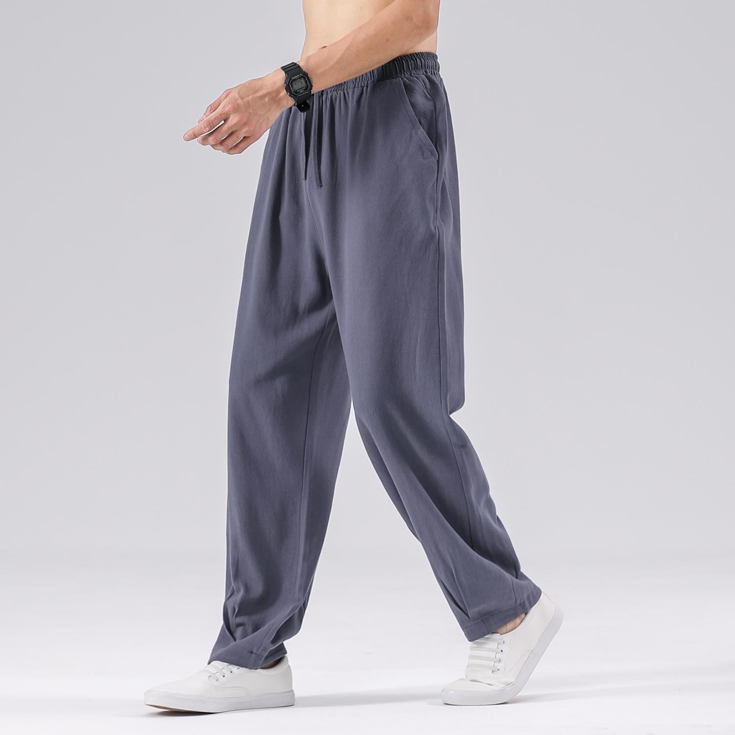 2023 Летние мужские брюки из хлопка и льна в китайском стиле, однотонные тонкие шаровары, мужские прямые брюки-джоггеры с эластичной резинкой на талии 5XL темно серый