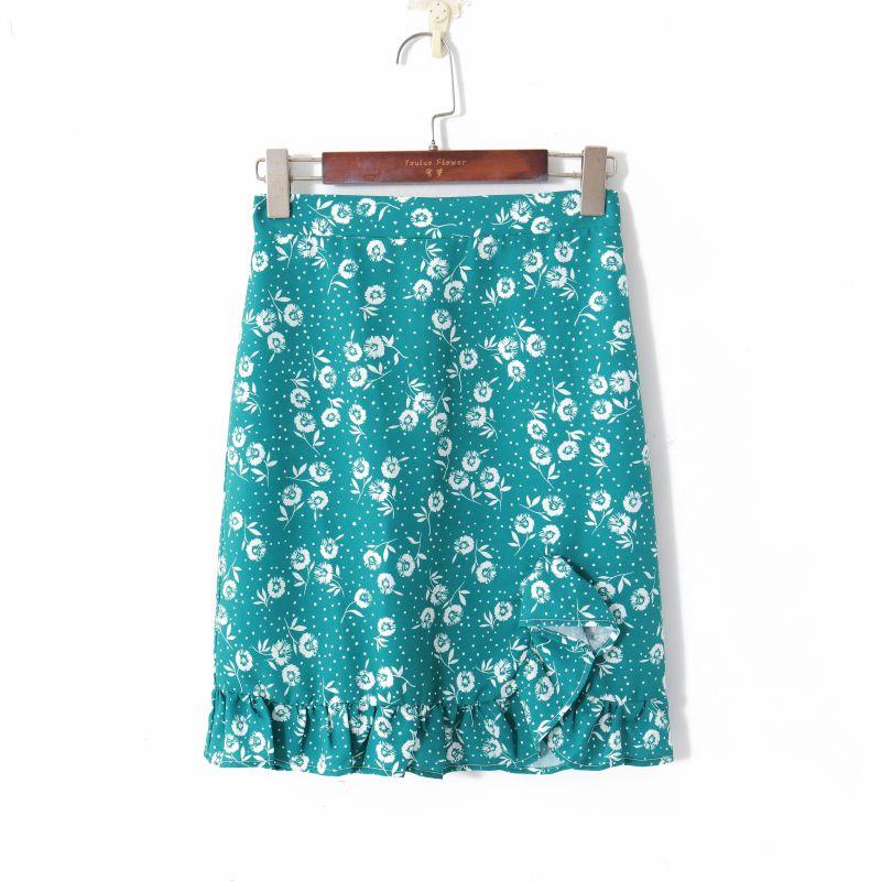 2023 Лето Женская Юбка во Французском Стиле Ретро Принт Молодящая Юбка С Завышенной Талией Стройнящая Облегающая Волан Пэплум Платье с Облегающим Бедрами Green Print M