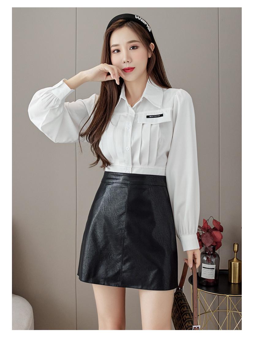 2023 Осень/Зима Женская Юбка Миди А-силуэта Облегающая из ПУ кожи с высокой посадкой - Черная S