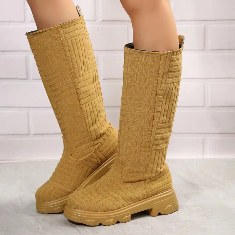 2023 Осень/Зима Роскошные Брендовые женские эластичные теплые сапоги на платформе женские и икры хлопковые сапоги трендовые хлопковые сапоги Челси