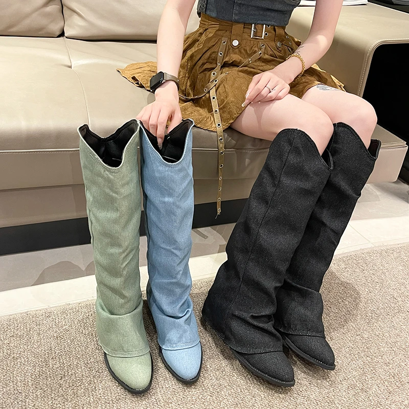 2023 джинсовые сапоги на высоком каблуке Женская обувь на тонком каблуке весна-осень высокие ноги