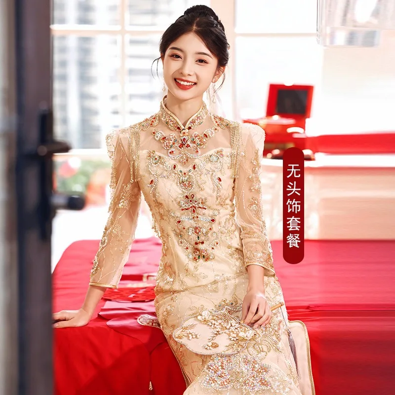 2023 изысканное свадебное платье цвета шампанского с блестками и вышивкой