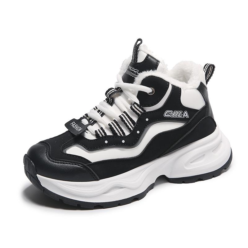 2023 качественная новая зимне-зимняя плюшевая спортивная обувь для женщин, хлопковая обувь с высоким берцем, теплая обувь, нескользящая уличная удобная обувь 35 чёрный