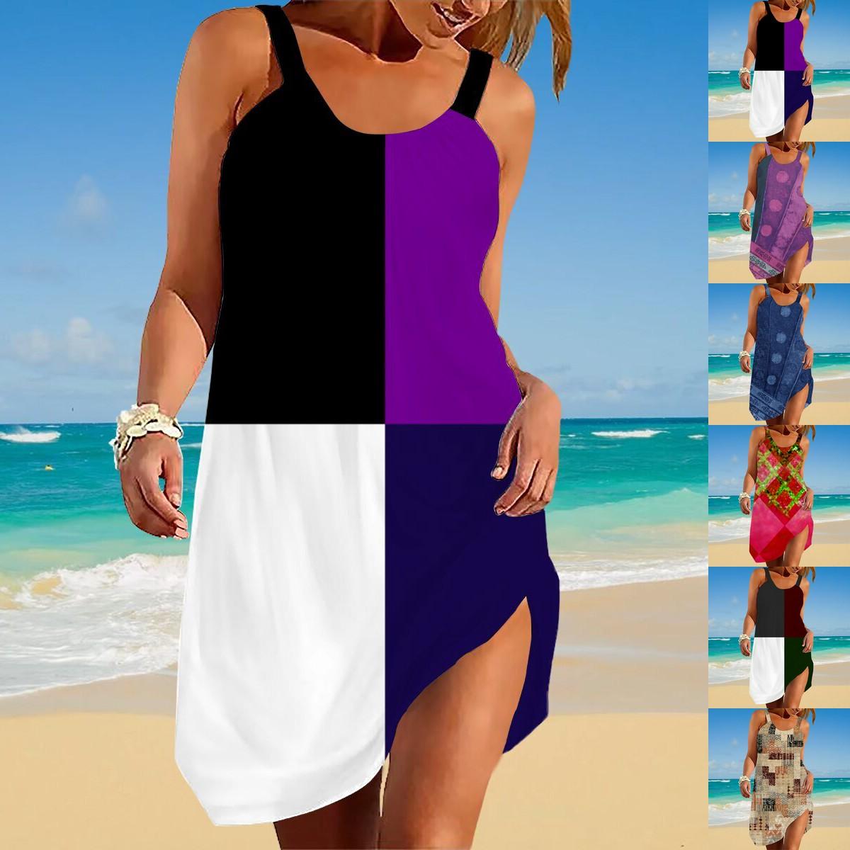 2023 летнее новое модное женское платье-бретелька с цветочным принтом, повседневное платье больших размеров S-2XL