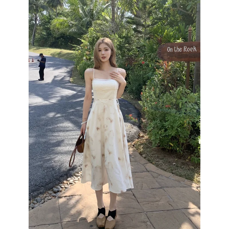 2023 летнее пляжное платье Y2k средней длины, женское повседневное элегантное Цветочное платье на бретелях, дизайнерское цельнокроеное корейское платье без рукавов