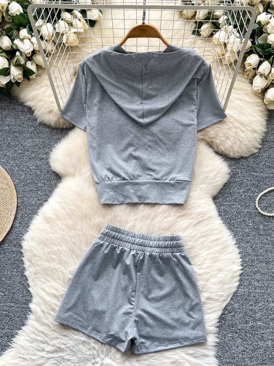 Повседневная спортивная одежда, комплект из двух предметов, женская летняя универсальная толстовка с капюшоном ort Sve, футболка с высокой талией и широкими штанинами