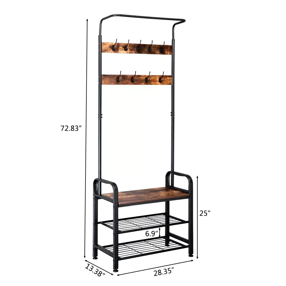 2023 промышленная винтажная стойка для пальто, скамейка для обуви, прихожая с деревом, полка для хранения 3 в 1, дизайнерская напольная вешалка,...
