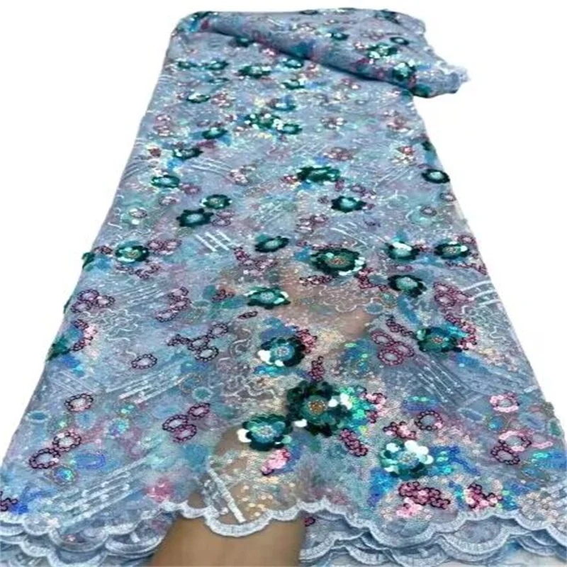2023 разноцветная элегантная африканская вышивка бисером кружевная ткань фототкань для свадебной вечеринки синий