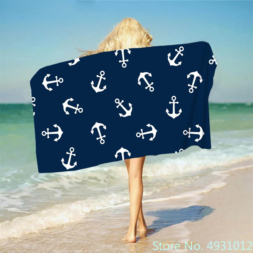 2023 темно-синее пляжное полотенце с якорем на лодке, банное полотенце для ванной комнаты, модное одеяло без песка для взрослых, настраиваемая мочалка 70x см