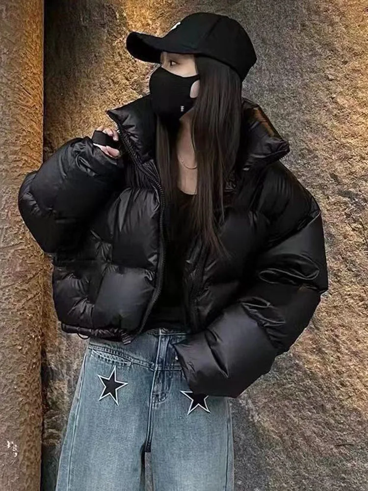 2023 толстые женские парки, зимние теплые свободные пышные пальто с хлопковой подкладкой, корейские куртки с воротником-стойкой, черная модная женская одежда