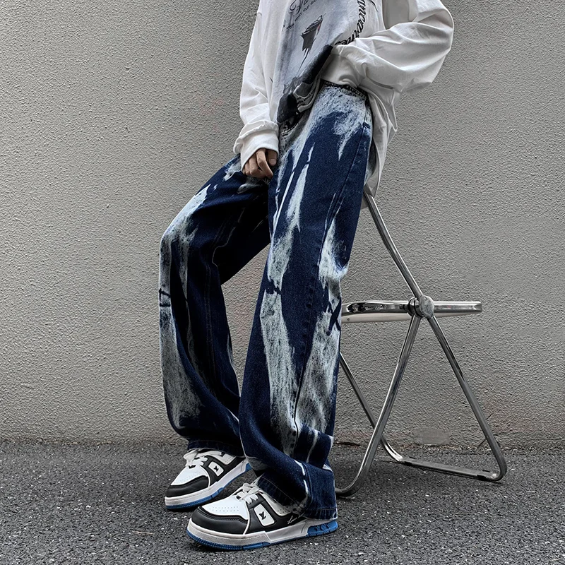 2023 Spting Tie-dye Jeans Men High Street прямые джинсовые брюки, мужские мешковатые модные трендовые джинсовые брюки, мужские брюки с широкими штанинами