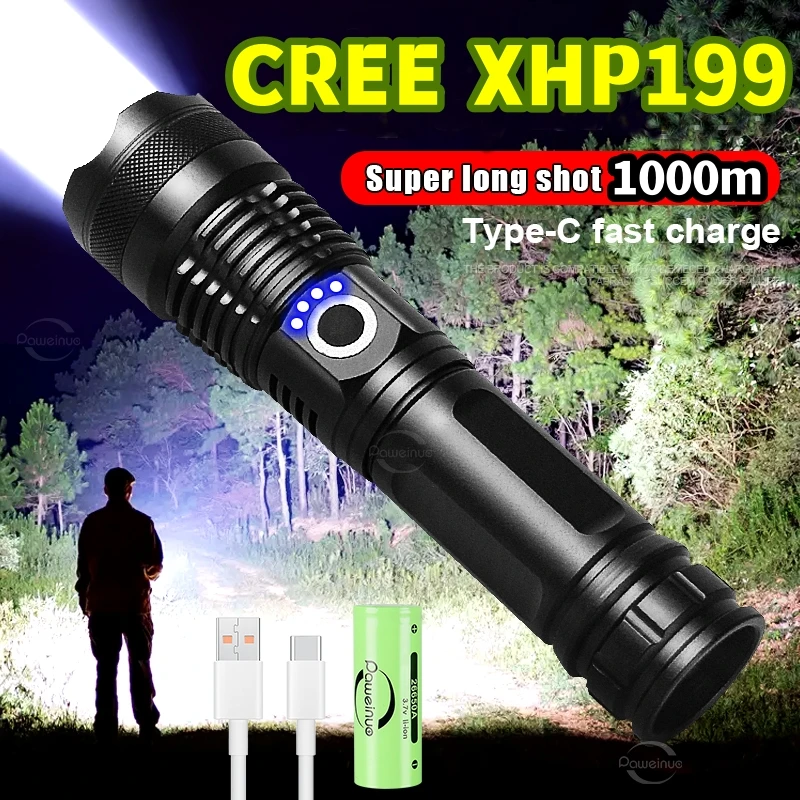 2023 XHP199 обновленный мощный фонарик, перезаряжаемый фонарик большой мощности, фонарик для кемпинга