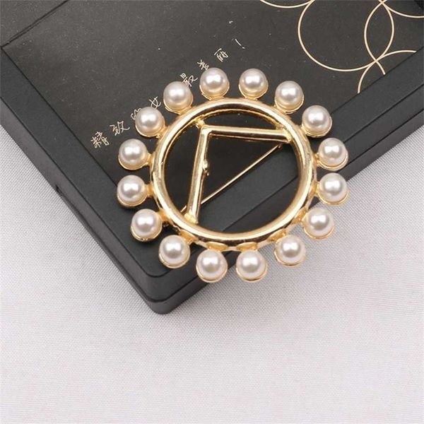 2023 chaohan letter f french cool style light luxury celebrity sweater cardigan anti slip button set with pearl suit chest pin, Gray
