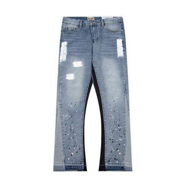2023 clothing denim pants galleryes dept jeans ink splashing graffiti micro horn structure splicing casual loose jeans long men's women, Blue