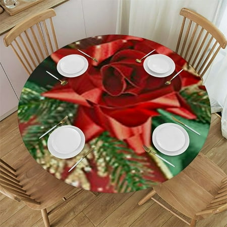 BANET Christmas and Snowflakes Round Tablecloths Red Circular Table Cover Washable Polyester for Buffet Table Parties Holiday Dinner 54 -58