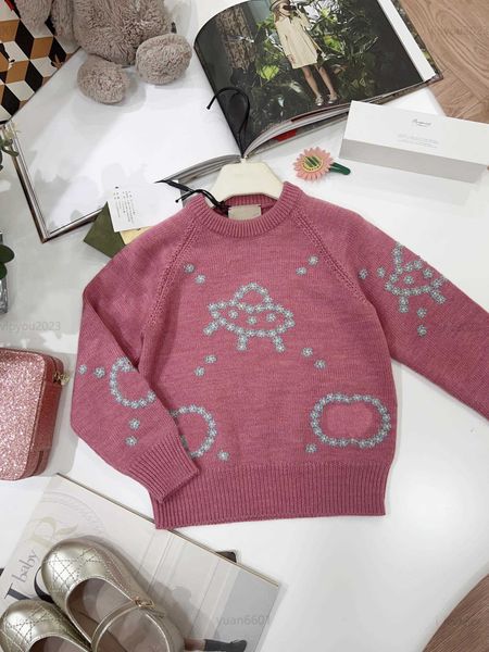 2023 designer baby pullover fashion long sleeved kids sweater size 100-160 cm embroidered flower pattern child knitwear, Blue