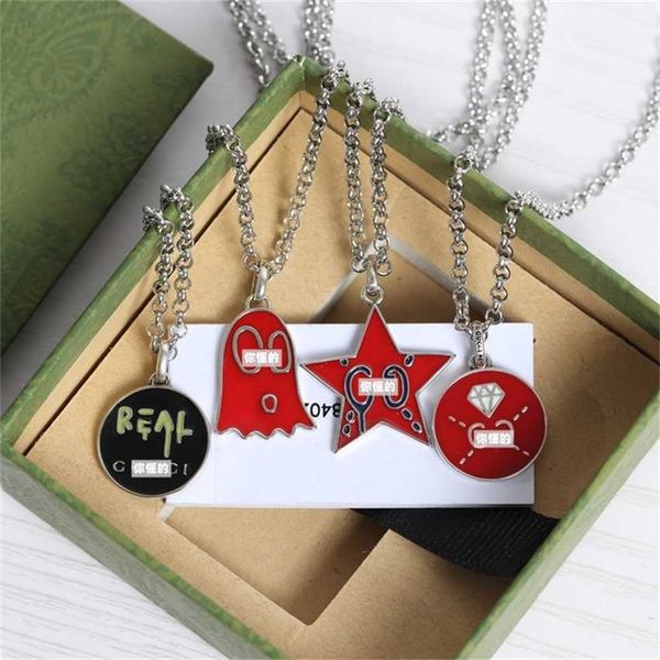 2023 designer new jewelry real series ghost spirit enamel drop rubber pendant antique craft double letter trend necklace, Black