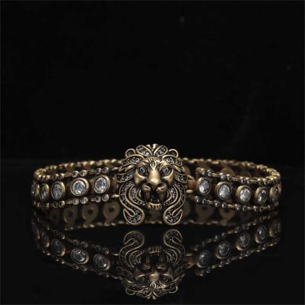 2023 designer new jewelry series lion king alloy exaggerated heavy industry style stone inlaid domineering bracelet texture chain men, Black
