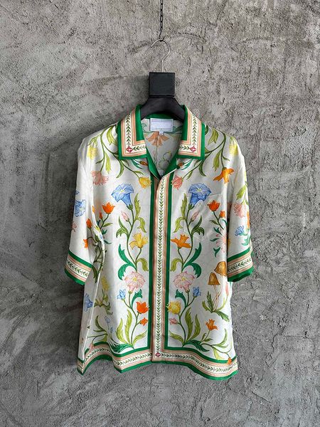 flower pattern silk short sleeve shirt, custom made silk fabric, imported machine hd digital printing, laser positioning cutting, recommended for dry cleaning or hand washing.syi