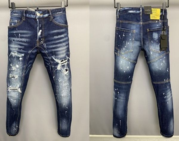 2023 new men jeans hole light blue dark gray italy brand man long pants trousers streetwear denim skinny slim straight biker jean for d2 28-