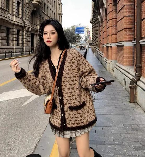 2023 women's sweaters designer luxury vneck cardigans for women casual cardigan new mid-length knit puff dress knit coats autumn sweate, White;black