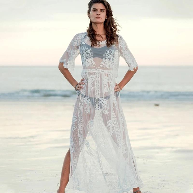 2024 Белая туника, сексуальное пляжное мини-платье с открытыми плечами и круглым вырезом, летняя женская пляжная одежда, купальник, накидка, саронг One Size мята кремового