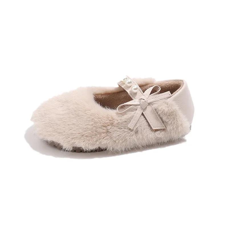 2024 Детские кожаные туфли для девочек Зимние новые модные корейские туфли с мягкой подошвой, нескользящие, универсальные, шикарные туфли принцессы 23 бежевый